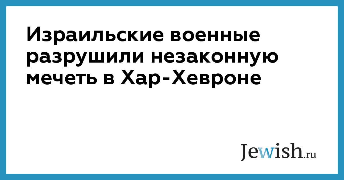 Израильские военные разрушили мечеть в Хар-Хевроне, расположенную недалеко от поселка Ятта к югу от Хеврона. Верховный суд признал незаконным строительство данной мечети и постановил снести здание.