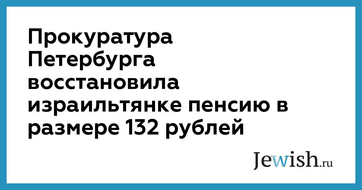 "На основании этого решения управление Пенсионного фонда РФ в Невском районе восстановило выплату пенсии по старости гражданке, постоянно проживающей в государстве Израиль, в размере 132 рублей 00 копеек", — отметили в прокуратуре.