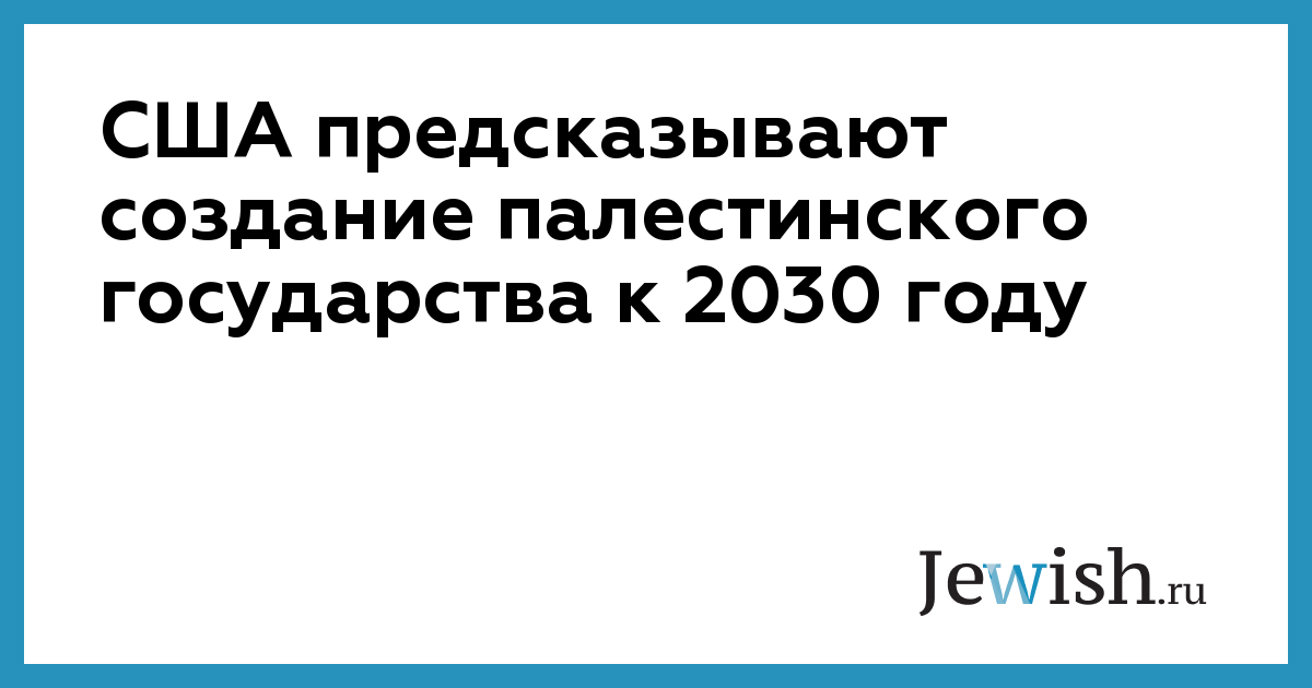 К 2030 году палестинцы добьются создания своего государства в границах 1967 года, однако мира с Израилем и решения принципиальных вопросах (о беженцах, о столице ПА в Восточном Иерусалиме и так далее) по-прежнему не будет. Такие прогнозы дает американская разведка.