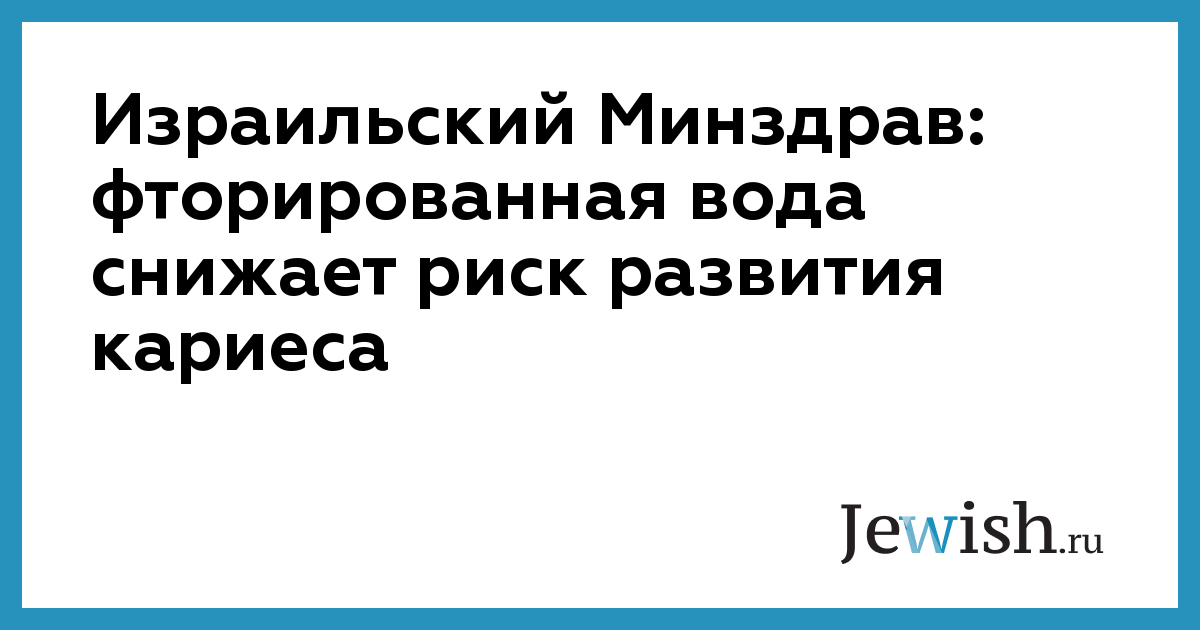 Согласно отчету израильского Минздрава, в городах, где водопроводная вода подвергается фторированию, у детей школьного возраста в два раза реже встречается кариес, чем в населенных пунктах, где в воду не добавляется фтор. В исследовании, которое проводилось с 2011-го по 2012 год, приняли участие 1800 школьников в возрасте 12 лет, причем 90%детей родились в Израиле. Исследователи также в отдельную группу выделили школьников, воспитывающихся в семьях с низким достатком.