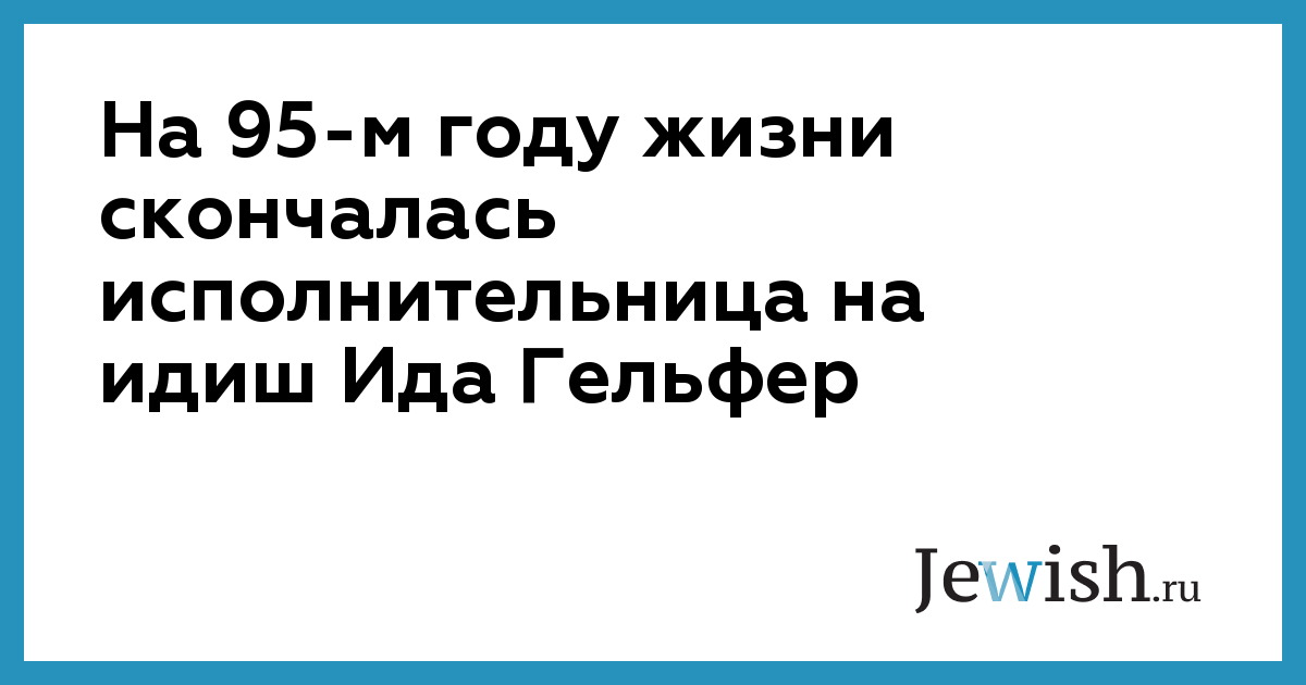 На 95-м году жизни скончалась Заслуженный деятель культуры Украины, одна из старейших исполнительниц песен на идиш в Украине, лауреат международной премии "Дружба", Международного фестиваля "Блуждающие звезды" и "Шалом, Украина", Почетный деятель Еврейского совета Украина Ида Моисеевна Гельфер.