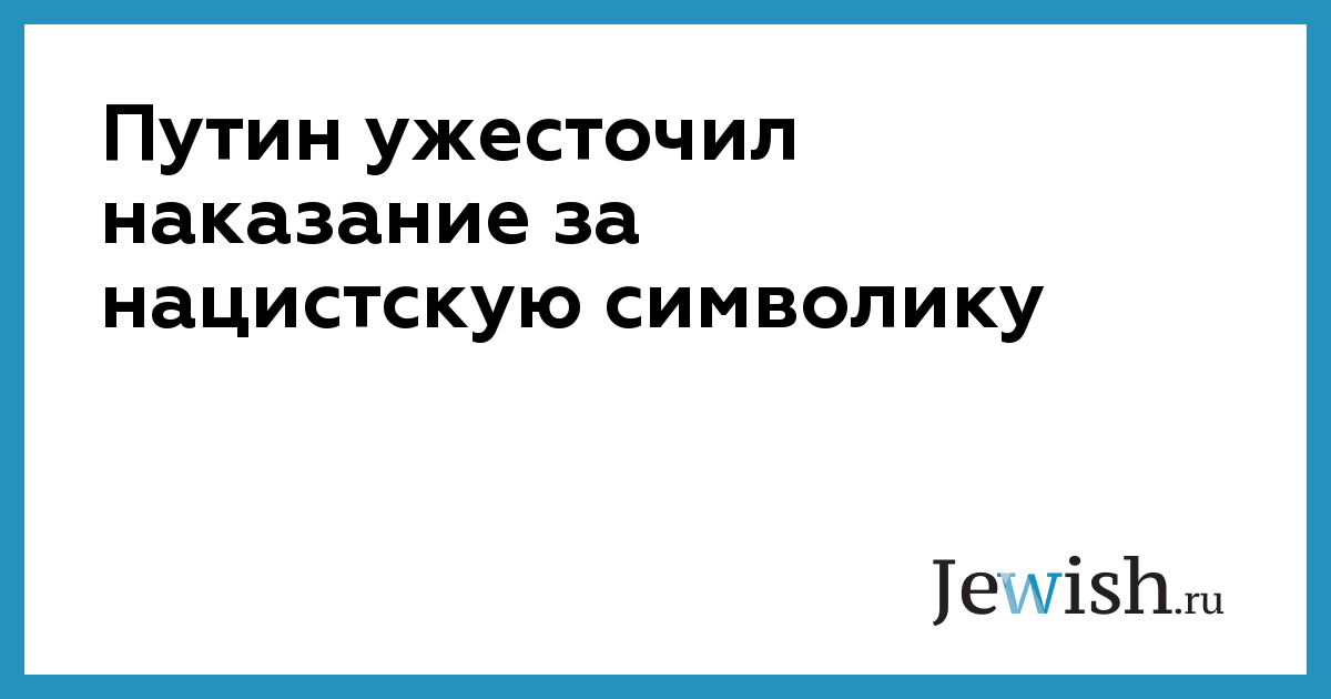 Президент РФ Владимир Путин подписал закон, ужесточающий наказание за пропаганду и публичное использование нацистской и любой другой экстремистской символики. Об этом сообщается на сайте Кремля.