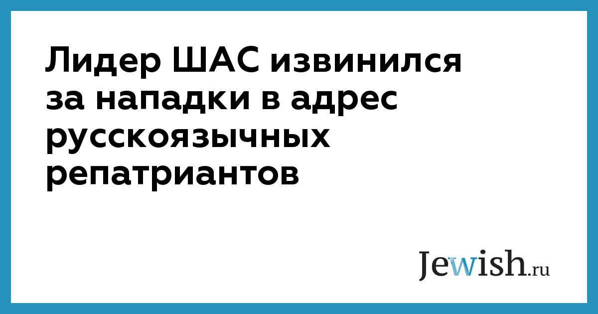 Лидер ШАС извинился за нападки в адрес русскоязычных репатриантов