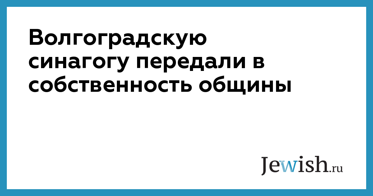 Волгоградскую синагогу передали в собственность общины