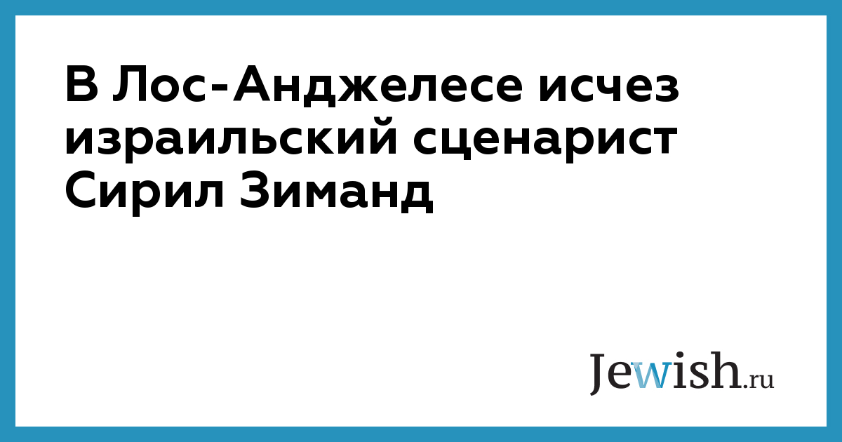 В минувшие выходные американское издание Jewish Journal сообщило о том, что в ноябре 2012 года в Лос-Анджелесе бесследно исчез 28-летний израильский сценарист Сирил Зиманд.