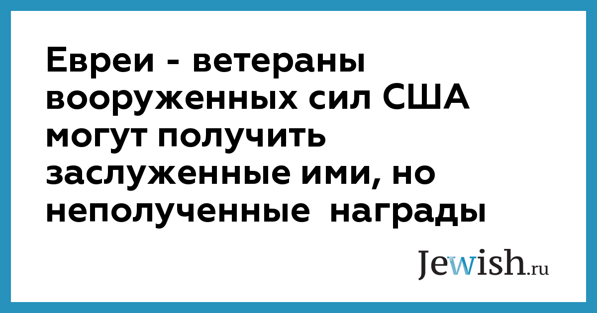 Евреи — ветераны вооруженных сил США могут получить заслуженные ими, но неполученные награды