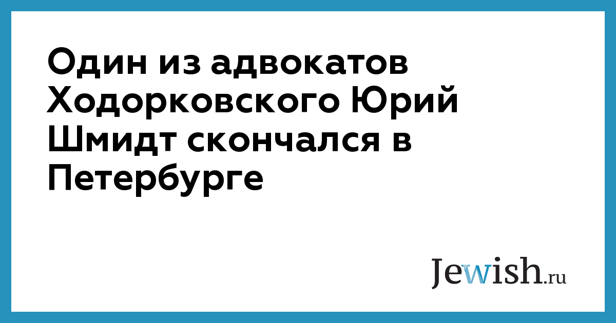 Один из адвокатов Ходорковского Юрий Шмидт скончался в Петербурге