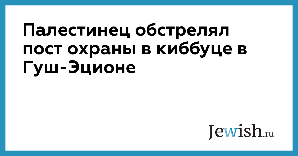 Палестинец обстрелял пост охраны в киббуце в Гуш-Эционе