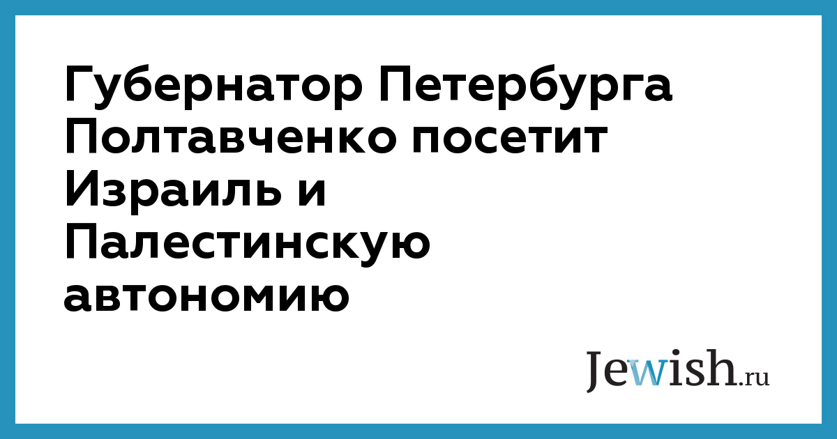 Губернатор Петербурга Полтавченко посетит Израиль и Палестинскую автономию