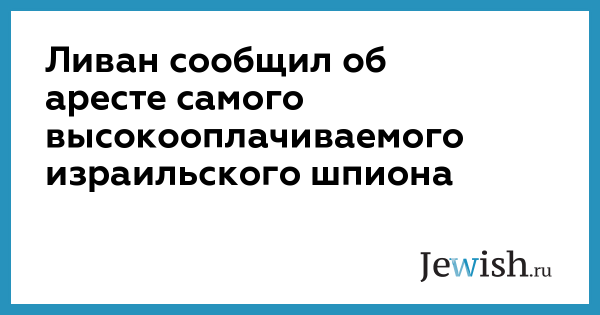 В Ливане сотрудники военного ведомства арестовали местного жителя, подозреваемого в сотрудничестве с Израилем. Задержанный — бывший член городского совета Баальбека Али Тауфик Яри — объявлен самым высокооплачиваемым шпионом, раскрытым до сего дня: сообщается, что за свою деятельность он получил от Израиля 600 тысяч долларов.