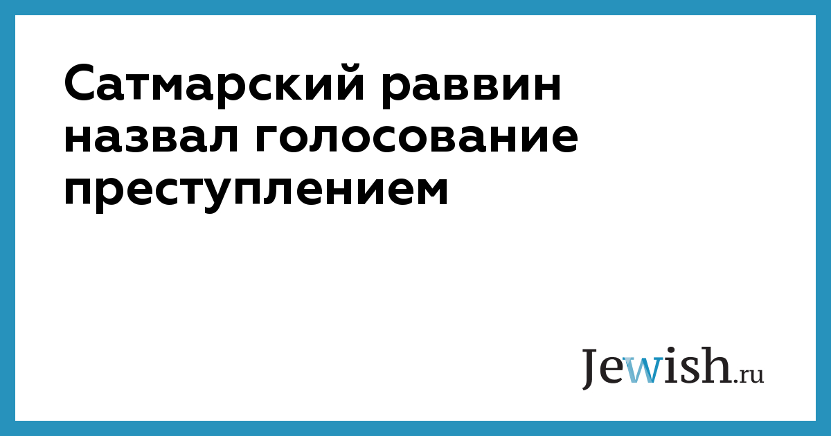 "Во всей Торе мы не найдем большего преступления, чем голосование на выборах, которые отменяют все положения Торы. Я убежден, что все раввины, которые разрешили голосовать в прошлом, сегодня признают, что они совершили роковую ошибку", — добавил раввин.
