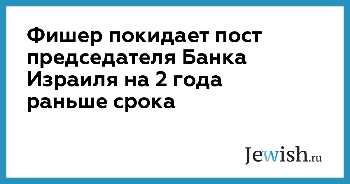 Фишер покидает пост председателя Банка Израиля на 2 года раньше срока