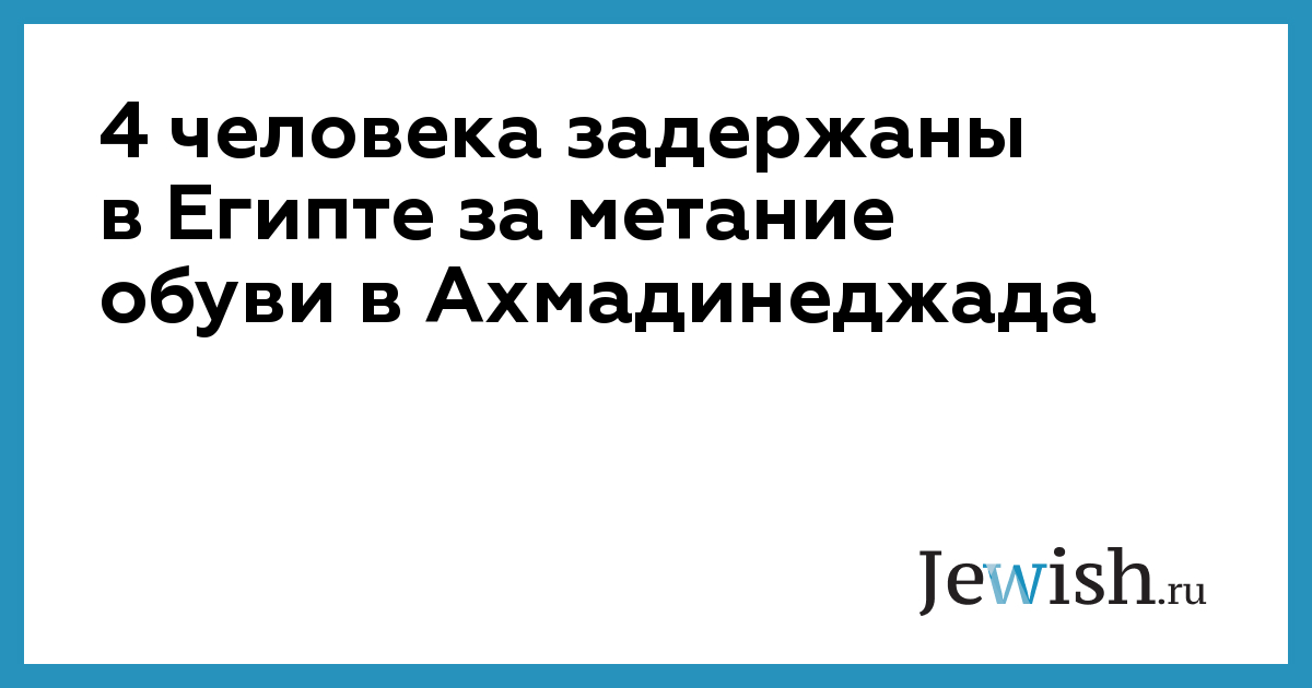 Египетские полицейские задержали четырех человек, подозреваемых в швырянии туфель в президента Ирана Махмуда Ахмадинеджада, сообщает NBC News. Как минимум один из задержанных — сириец, напавший на президента с криком "Ты убиваешь наших братьев!". О национальной принадлежности остальных не сообщается, но известно, что все они- радикальные исламисты.