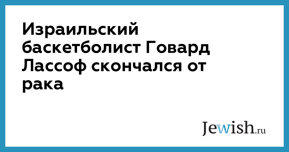 Израильский баскетболист Говард Лассоф скончался от рака