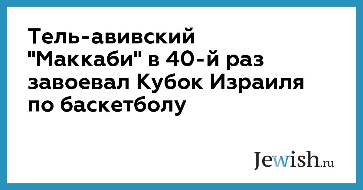 Тель-авивский "Маккаби" в 40-й раз завоевал Кубок Израиля по баскетболу