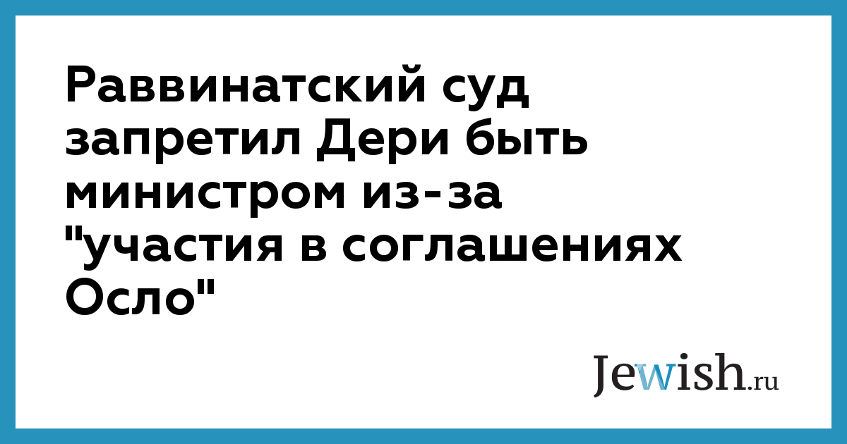 Коллегия иерусалимского раввинатского суда в составе трех судей временно запретила одному из лидеров партии ШАС Арье Дери занимать пост министра или любую другую должность во властных структурах. Как сообщает портал "Сругим", причиной запрета стала неявка Дери в суд для рассмотрение имущественного иска, выдвинутого против него двумя семьями жертв террора.
