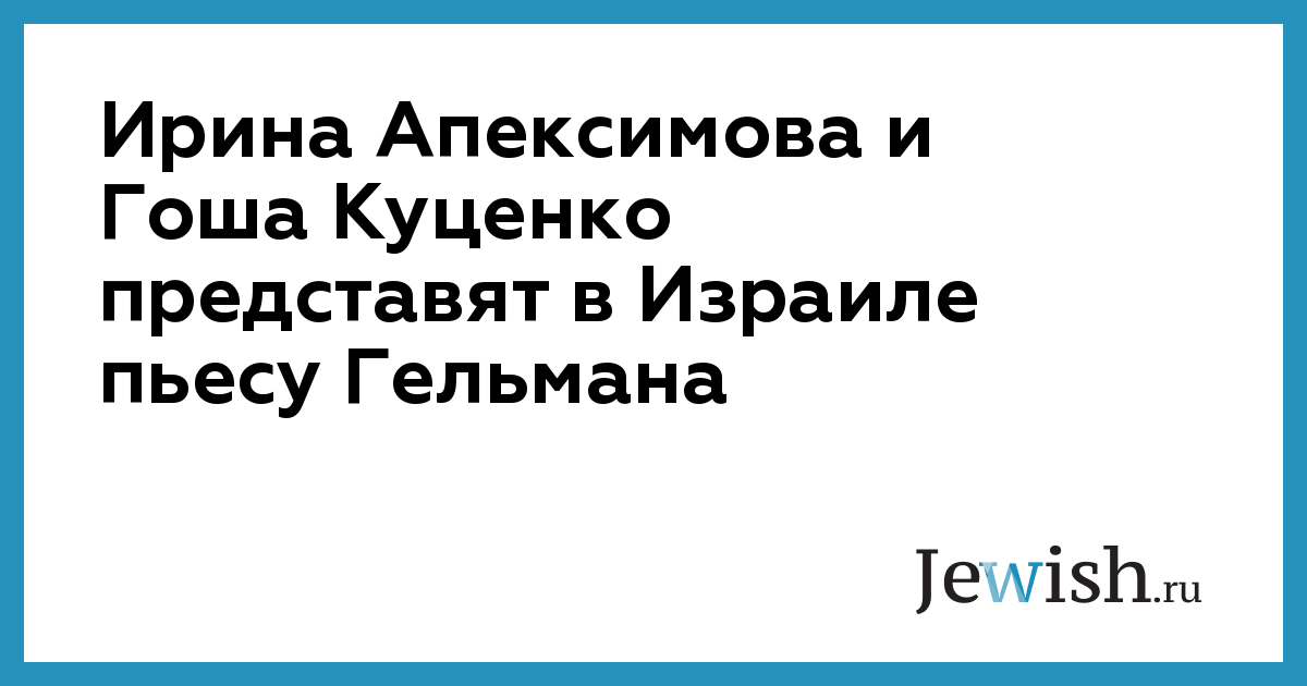 Ирина Апексимова и Гоша Куценко представят в Израиле пьесу Гельмана