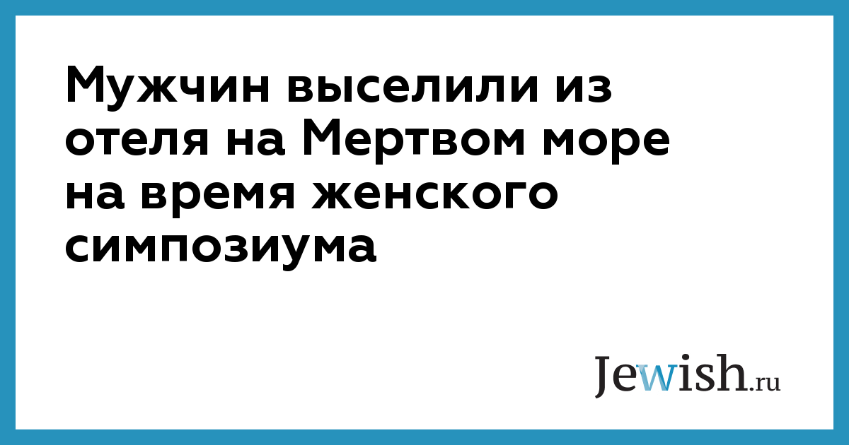Администрация отеля "Даниэль" на Мертвом море попросила всех постояльцев мужского пола переехать в другие гостиницы, чтобы не смущать религиозных женщин, собравшихся на симпозиум. Об этом инциденте рассказывает сайт "Мако" со ссылкой на публикацию в газете "Глобс".