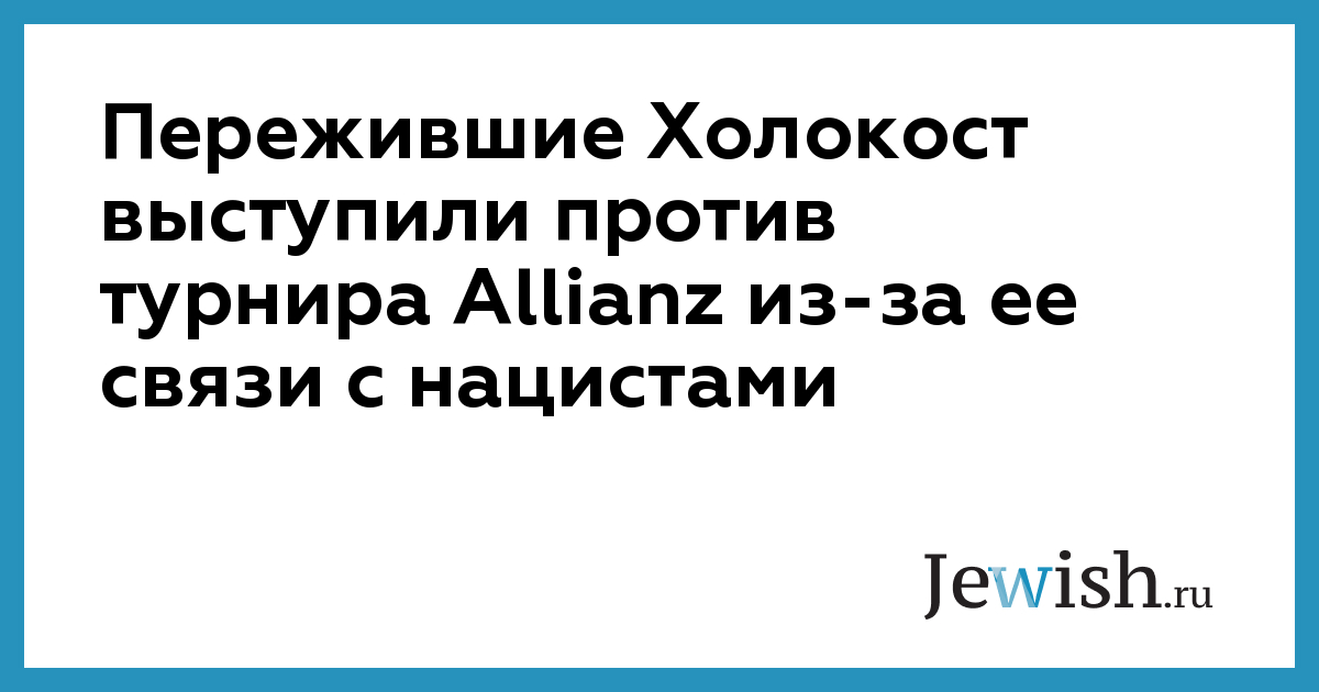 Несколько сотен человек, переживших Холокост, и присоединившиеся к ним представители еврейских и христианских организаций вышли на демонстрацию протеста против проведения соревнования по игре в гольф под эгидой немецкой компании Allianz, сообщает The Algemeiner. Турнир, завершившийся на этой неделе, проходил в Бока-Ратон, штате Флорида.