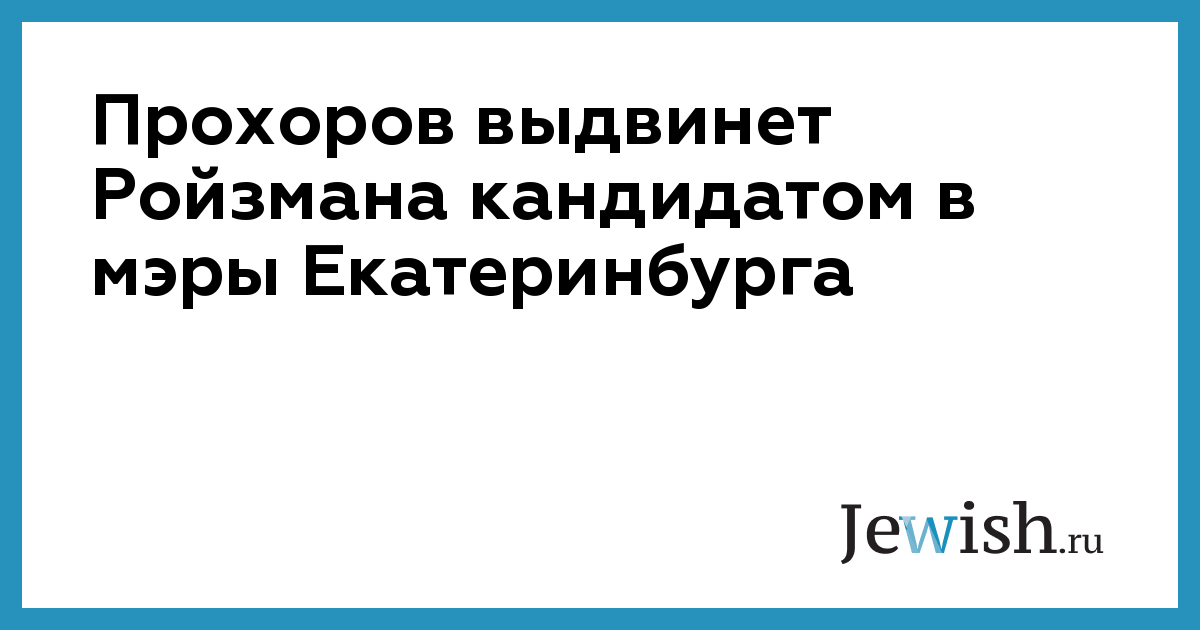 Глава фонда "Город без наркотиков" Евгений Ройзман будет выдвинут на пост мэра Екатеринбурга или в руководители городской думы от партии Михаила Прохорова "Гражданская платформа". Об этом пишет журнал "Профиль" со ссылкой на члена федерального гражданского комитета партии Станислава Кучера. Материал о выдвижении Ройзмана будет опубликован в номере от 18 февраля.