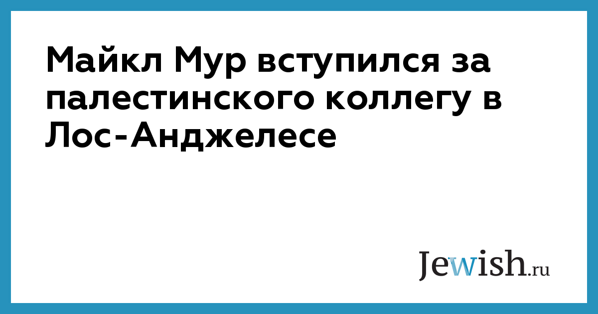 Знаменитый американский режиссер-документалист Майкл Мур, работающий в жанре острой социальной и политической сатиры, выразил возмущение по поводу задержания в аэропорту Лос-Анджелеса его коллеги — палестинца Имада Барната, одного из создателей фильма "Пять разбитых камер", претендующего в этом году на главный приз Американской киноакадемии "Оскар" в номинации "Лучший документальный фильм". Об этом пишут в среду, 20 февраля, зарубежные и израильские СМИ и, в частности, сайт газеты The Jerusalem Post.