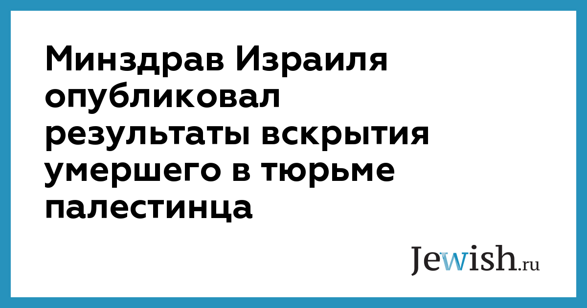 Минздрав Израиля опубликовал результаты вскрытия тела Арафата Шахина Джарадата (30), скончавшегося в израильской тюрьме. Вскрытие проводил профессор Йехуда Хисс, главный патологоанатом Института судебной медицины Абу Кабир, в присутствии палестинского коллеги Сабара Алуля и начальника медицинского управления в Минздраве Израиля Арнона Афека.