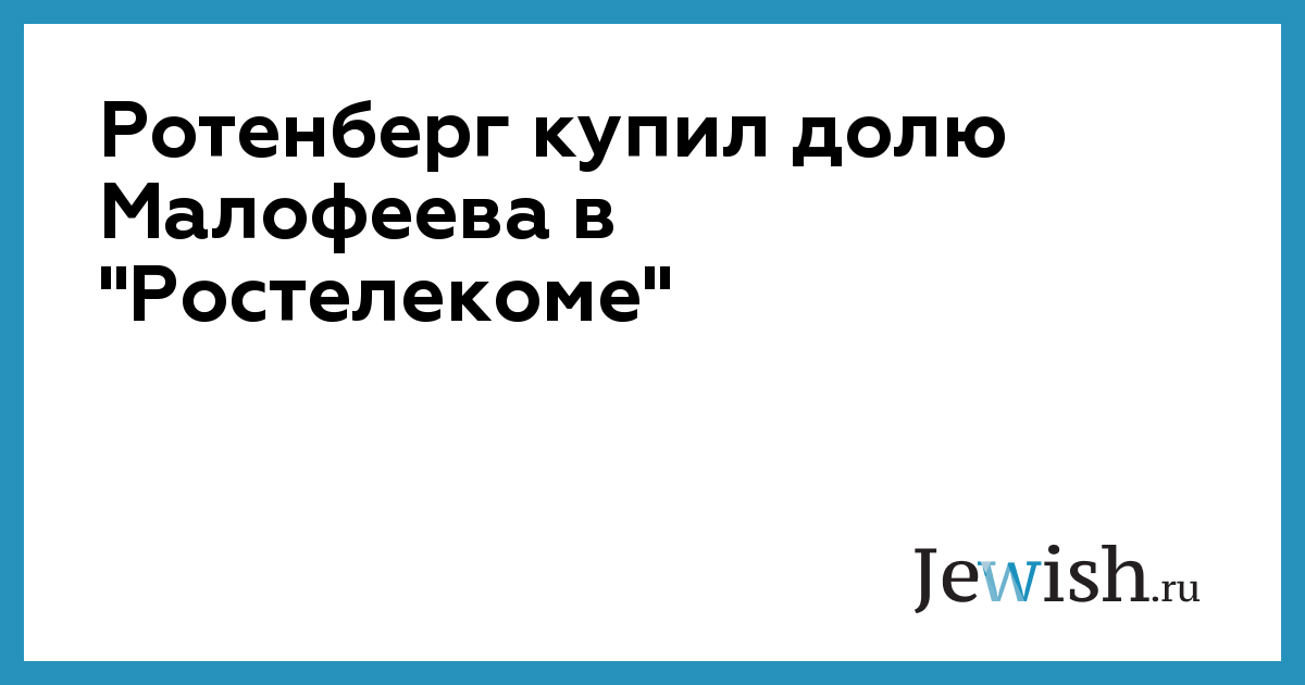 Ротенберг купил долю Малофеева в "Ростелекоме"