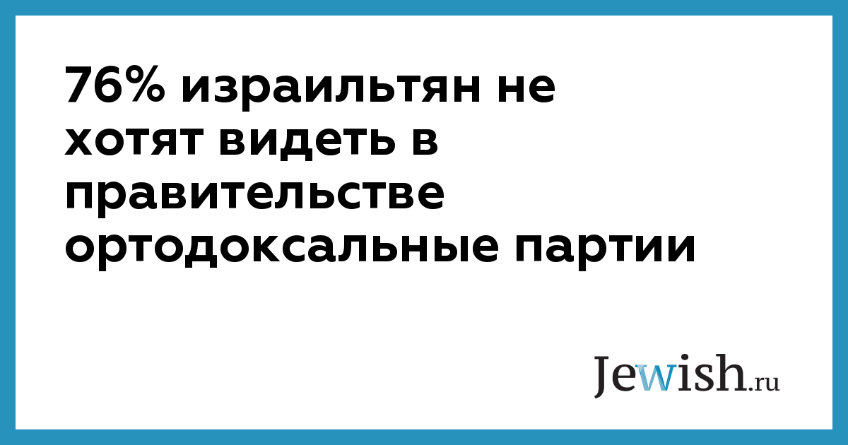 76% израильтян не хотят видеть в правительстве ортодоксальные партии