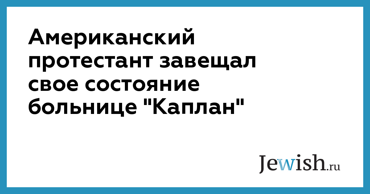 Американский протестант завещал свое состояние больнице "Каплан"
