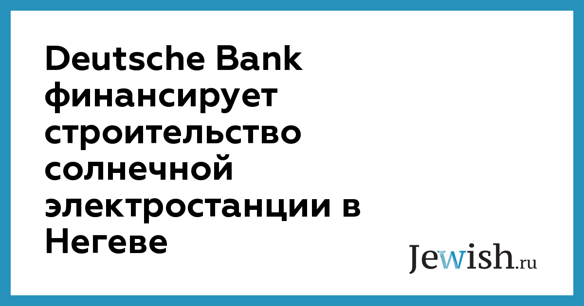 Deutsche Bank финансирует строительство солнечной электростанции в Негеве