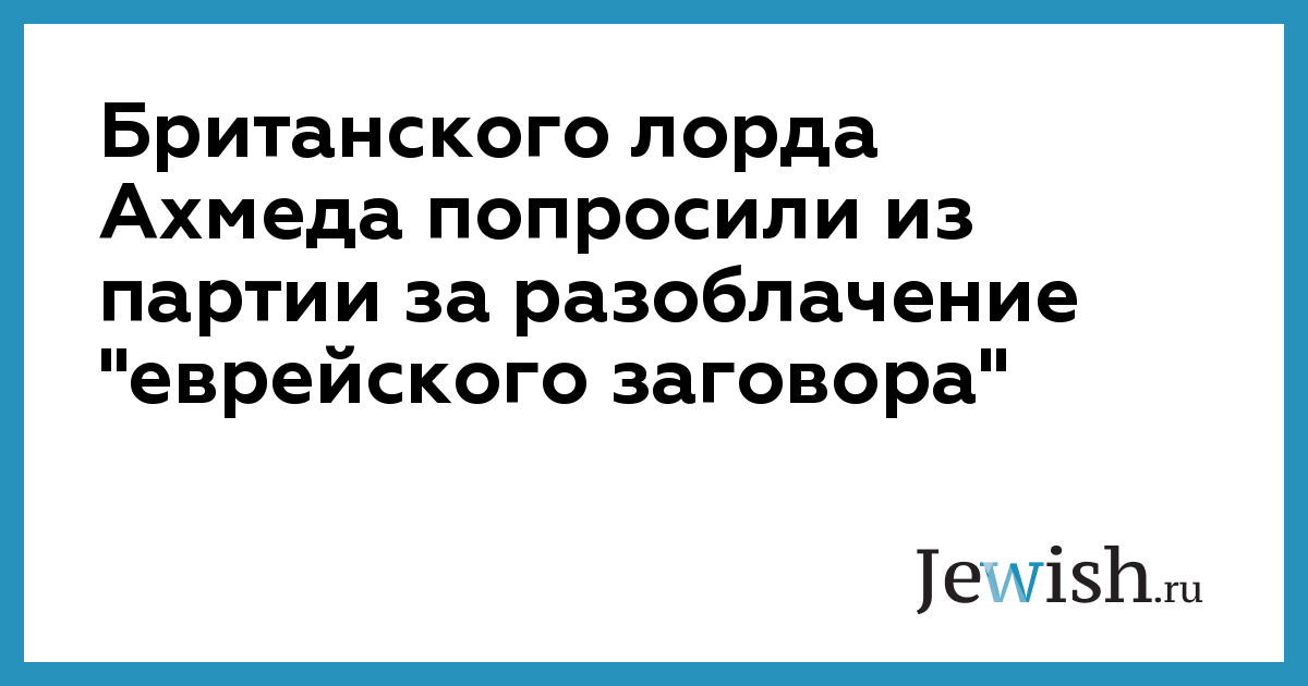 Британского лорда Ахмеда попросили из партии за разоблачение "еврейского заговора"