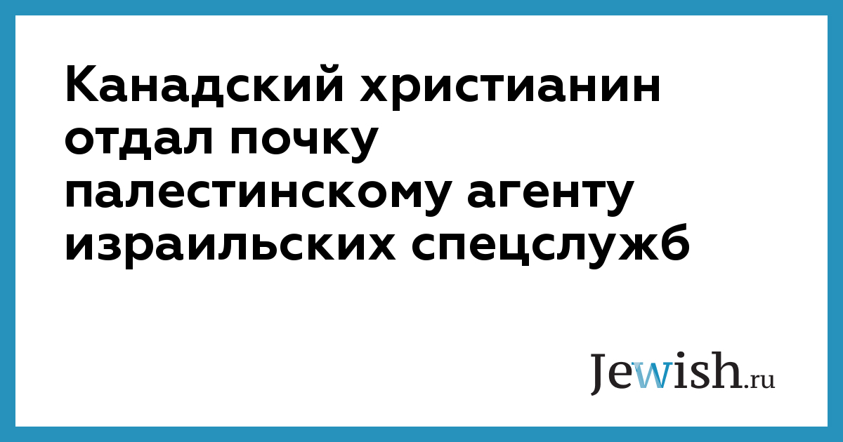 Канадский христианин отдал почку палестинскому агенту израильских спецслужб