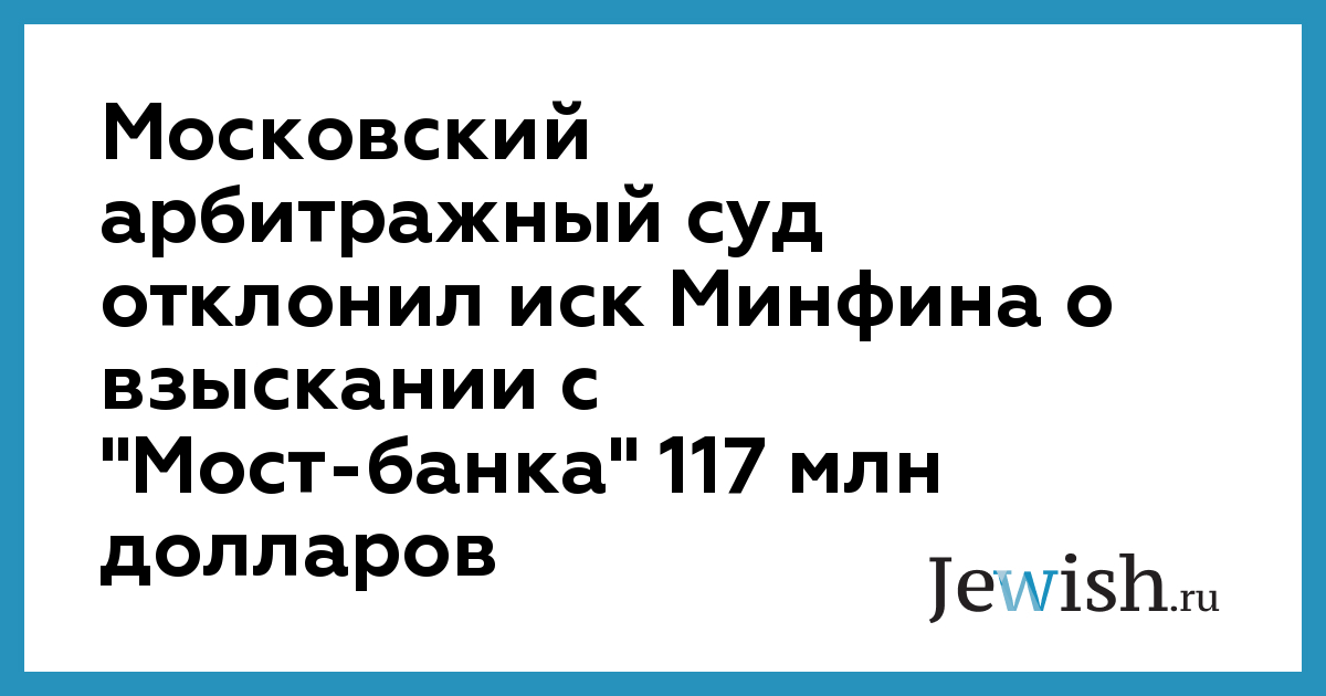 Московский арбитражный суд отклонил иск Минфина о взыскании с "Мост-банка" 117 млн долларов
