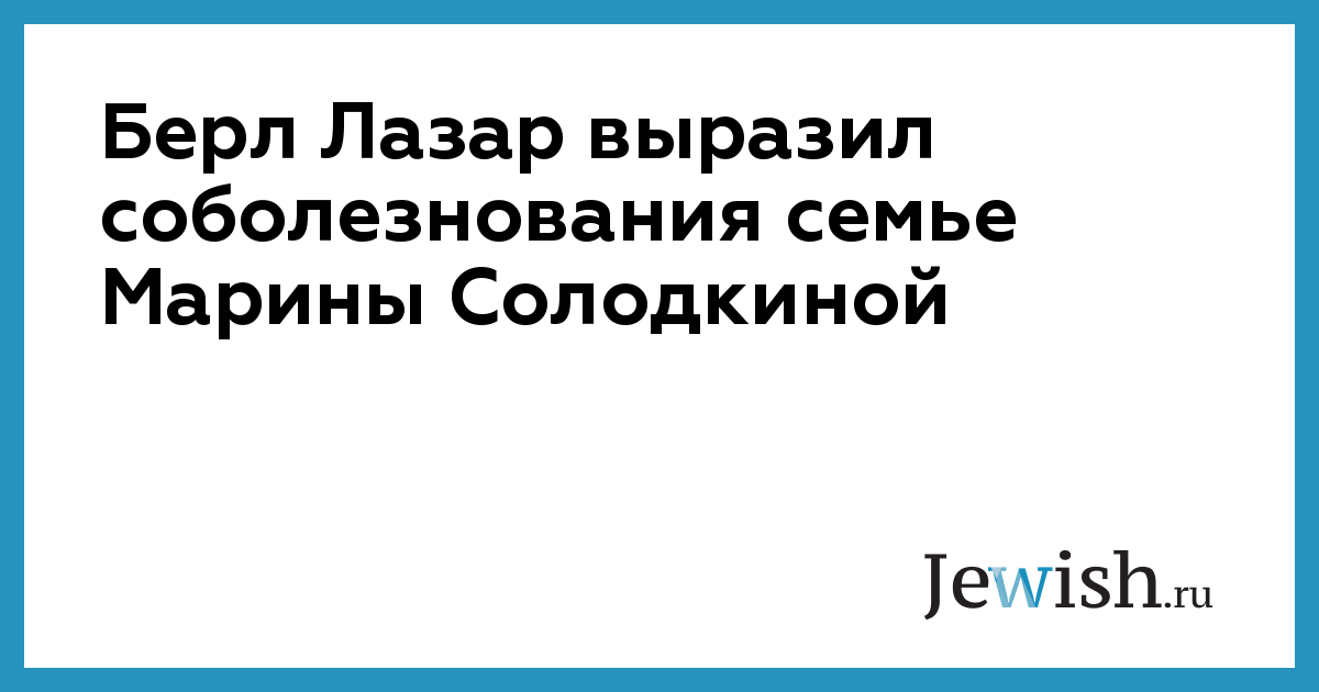 "С глубокой скорбью я узнал о безвременной кончине вашей жены и матери, замечательного человека и большого друга нашей общины, Марины Солодкиной. Уверен, что те же чувства боли испытывают сегодня тысячи израильтян и евреев во всем мире, — говорится в сообщении. -