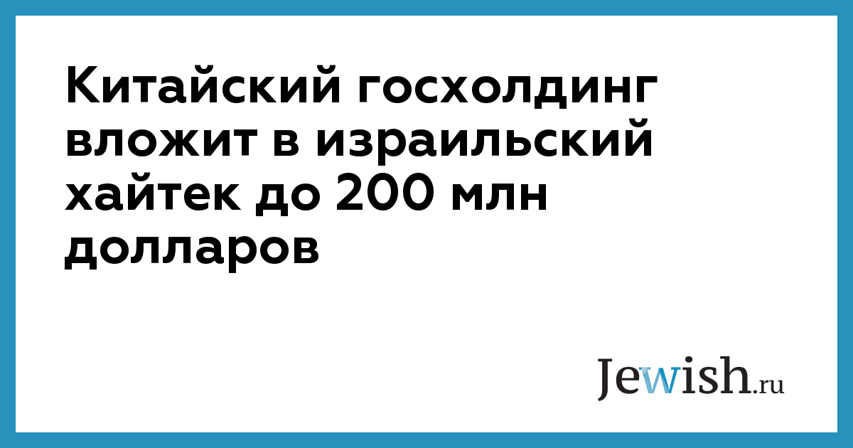 Китайский госхолдинг вложит в израильский хайтек до 200 млн долларов
