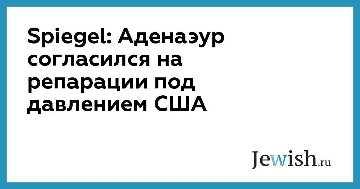 Оказывается, канцлер ФРГ Конрад Аденаэур руководствовался при подписании Соглашения о репарациях между ФРГ и Израилем от 10 сентября 1952 года (по нему Германия обязалась компенсировать еврейскому государству 3 млрд немецких марок) совершенно иными мотивами, нежели принято считать, сообщает Der Spiegel.