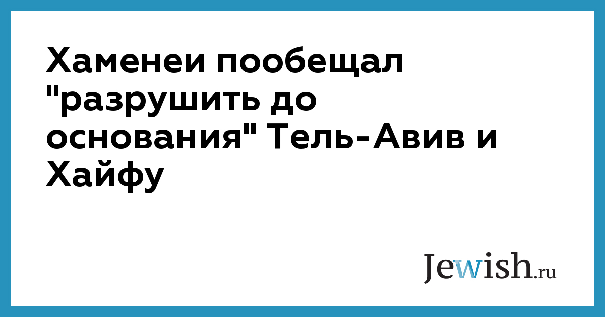 Хаменеи пообещал "разрушить до основания" Тель-Авив и Хайфу