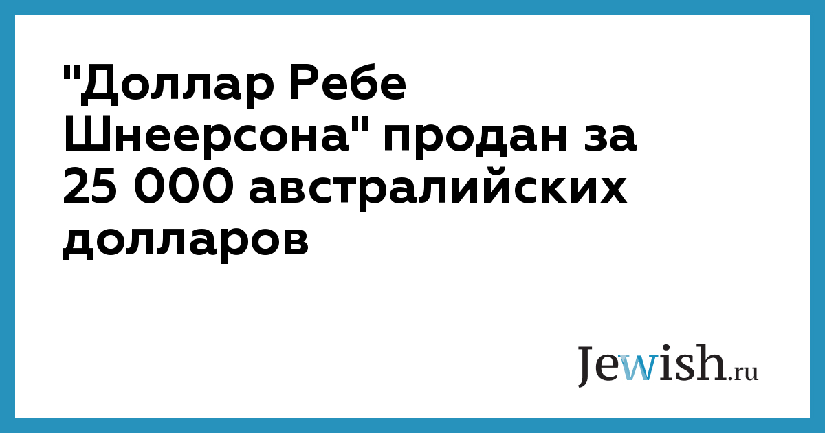 "Доллар Ребе Шнеерсона" продан за 25 000 австралийских долларов