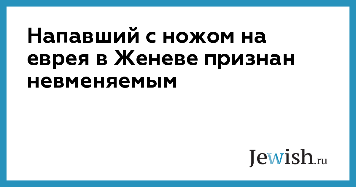 Антисемит, в конце 2011 года напавший с ножом в руках на еврея в центре Женевы, признан невменяемым. Эксперты диагностировали обвиняемому параноидальную шизофрению, а также признали, что он страдает визуальными и слуховыми галлюцинациями, сообщает Tribune de Geneve.