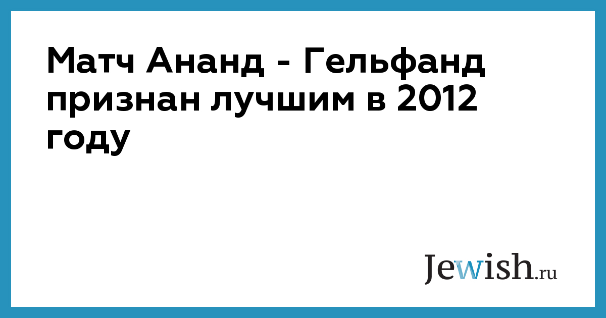Матч Ананд — Гельфанд признан лучшим в 2012 году