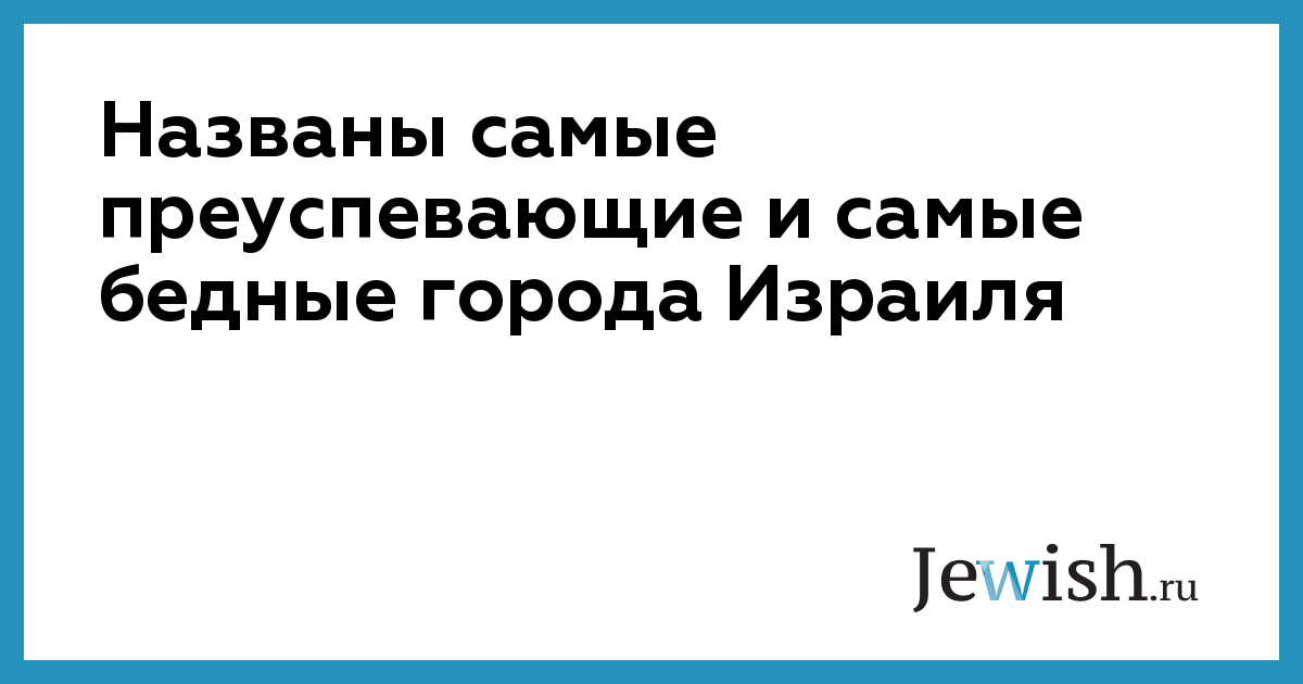 Самыми бедными городами оказались: Бней-Брак, Бейт-Шемеш, Модиин-Илит, бедуинские деревни в Негеве. Балл ниже среднего получил город Лод.