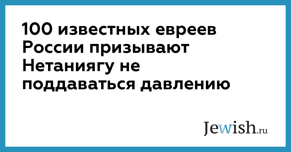 Сто влиятельных российских евреев призвали премьер-министра Израиля Биньямина Нетаниягу вести независимую политику в вопросе палестино-израильского урегулирования.