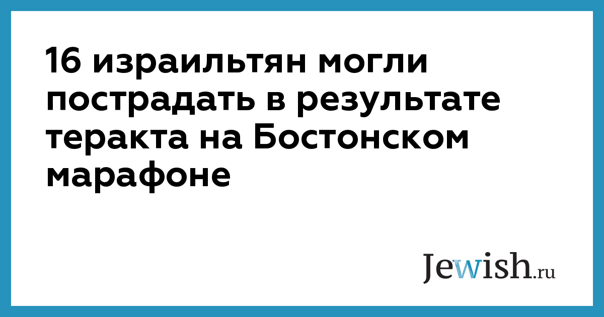Судя по официальному сайту 117-го Бостонского марафона, на финишной прямой которого 15 апреля с интервалом в 12 секунд прогремели два взрыва, в нем принимали участие 16 граждан Израиля. Их имена: Ирит Аиш, Юваль Барак-Коррен, Тами Барух, Цвика Бронштейн, Ари Дерове, Йедидия Фрайман, Яир Хадар, Даниэль Кац, Иегошуа Крюгер, Эйяль Маор, Бенни Мельницки, Нери Мински, Ран Реувени, Наор Снир, Орит Трумпер-Села, Мария Власенко. Вероятно, были израильтяне и среди зрителей.