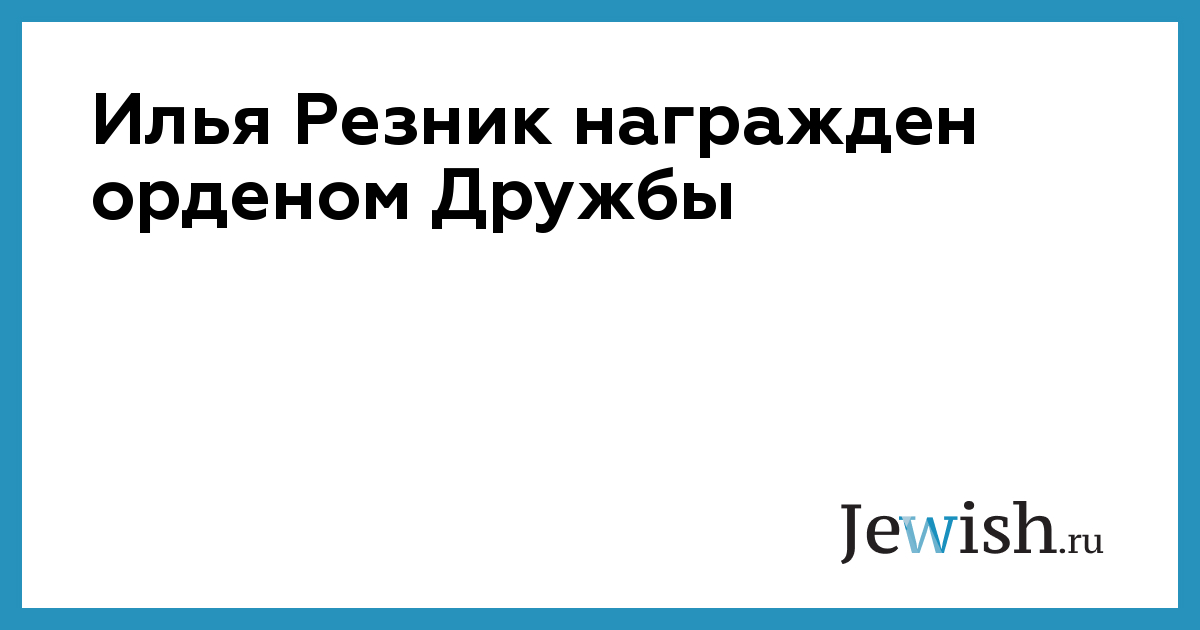 Илья Резник награжден орденом Дружбы