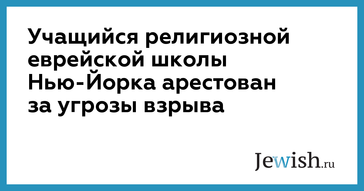 Учащийся религиозной еврейской школы Нью-Йорка арестован за угрозы взрыва