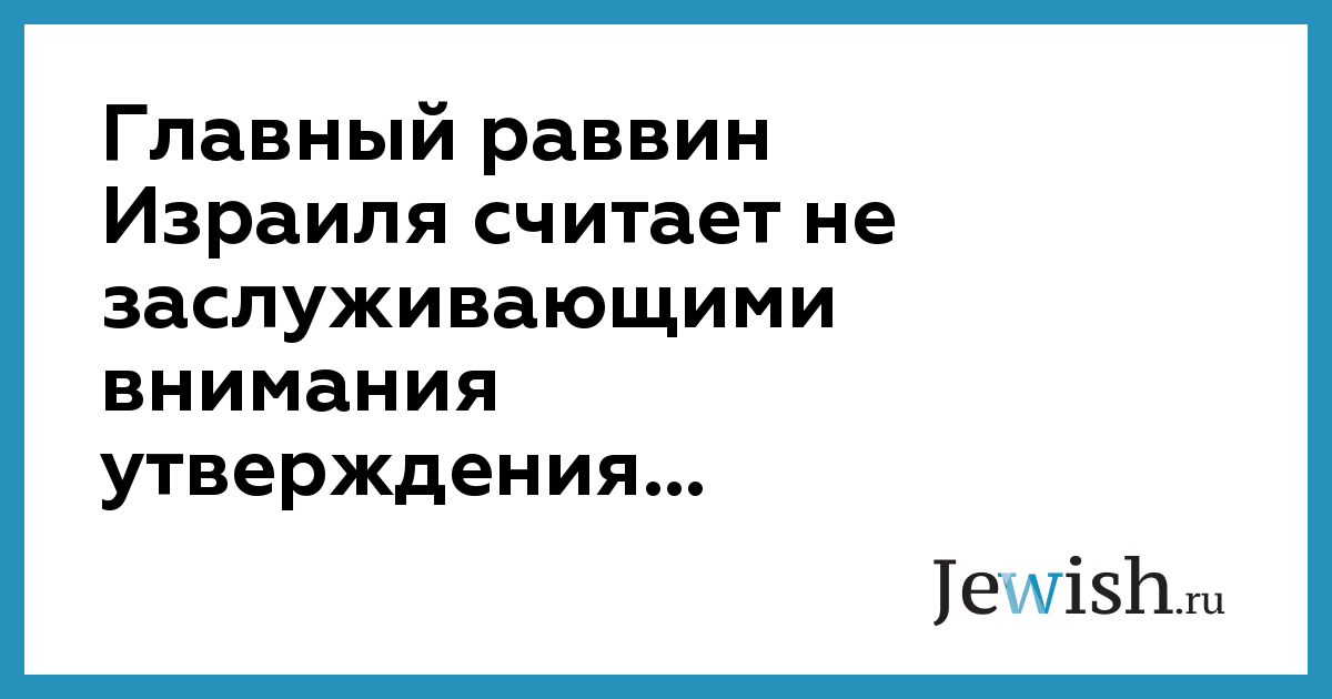 Главный раввин Израиля считает не заслуживающими внимания утверждения...