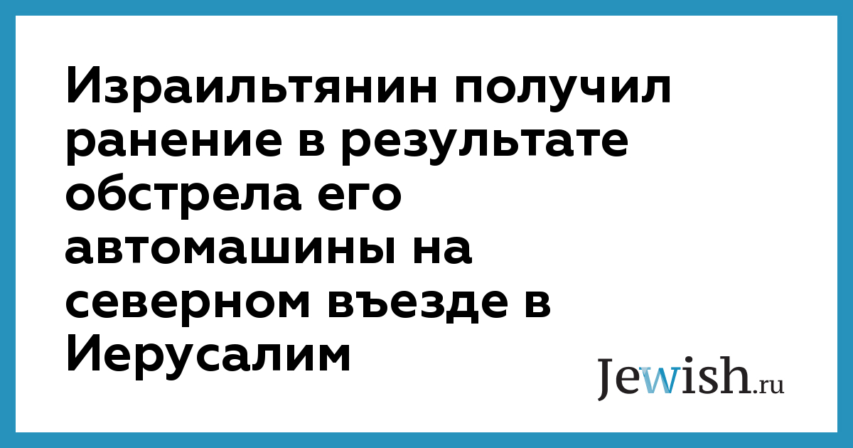 Израильтянин получил ранение в результате обстрела его автомашины на северном въезде в Иерусалим