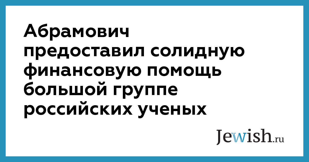 Абрамович предоставил солидную финансовую помощь большой группе российских ученых