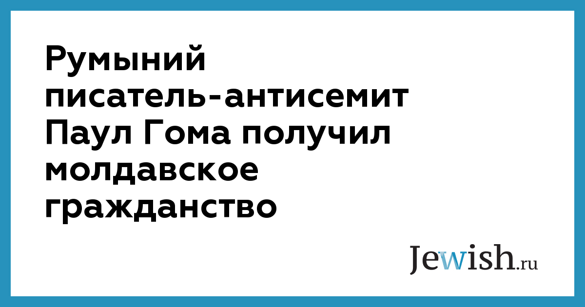 Румынский писатель-антисемит Паул Гома получил молдавское гражданство. Писатель намерен прибыть в Кишинев, где возглавит Центр изучения коммунизма в Бессараби и Бковине, созданном при Союзе писателей.