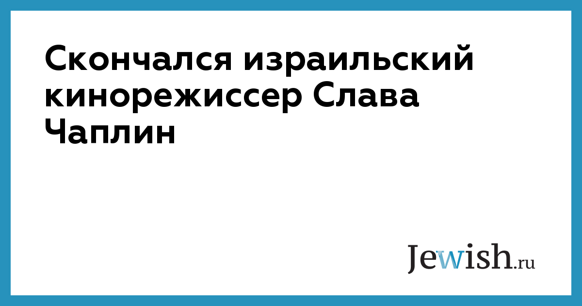 28 апреля на 81-м году жизни скончался знаменитый израильский кинорежиссер Слава Чаплин. Чаплин родился в 1932 году в городе Вышний Волочок. Окончил ВГИК. Свою первую ленту "Хотите верьте, хотите — нет" он снял в 1964 году. В 1976 году репатриировался в Израиль.